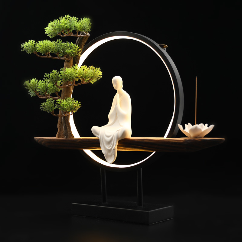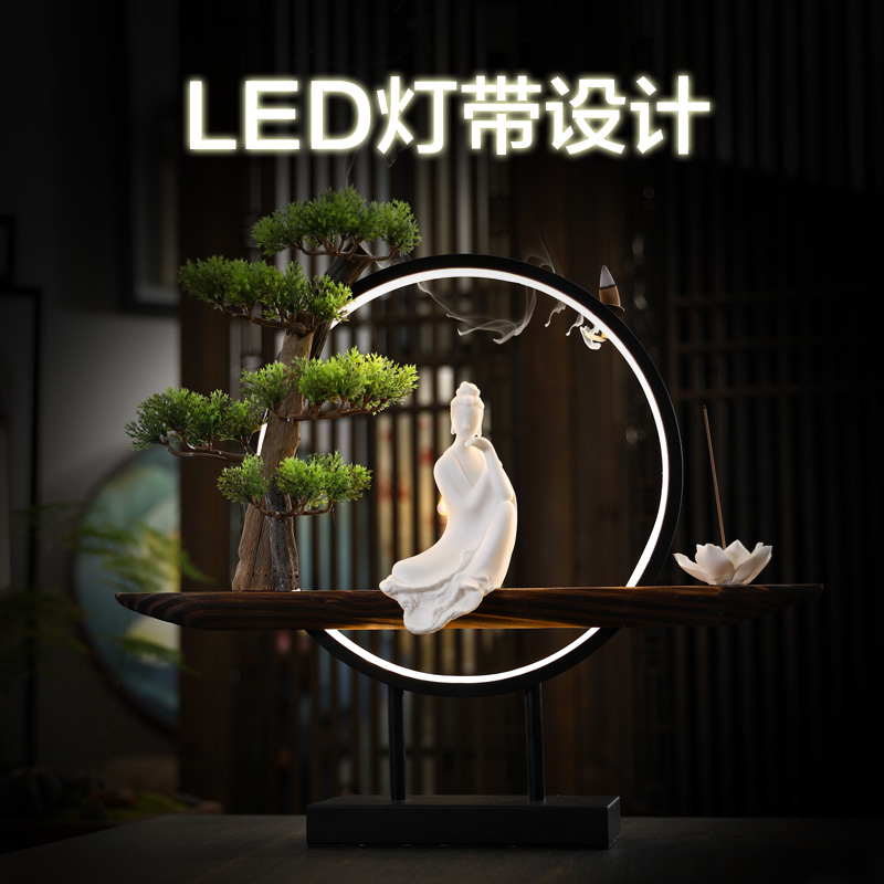 Gongdefang Chinese-style large ornaments incense flow back home indoor viewing with lights Guanyin Tathagata gift ornaments