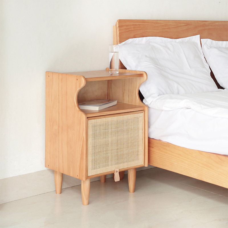 Day-style creative bed head cabinet folk and wind belt light solid wood rattan chic bedside cabinet minimalist modern small family type containing cabinet