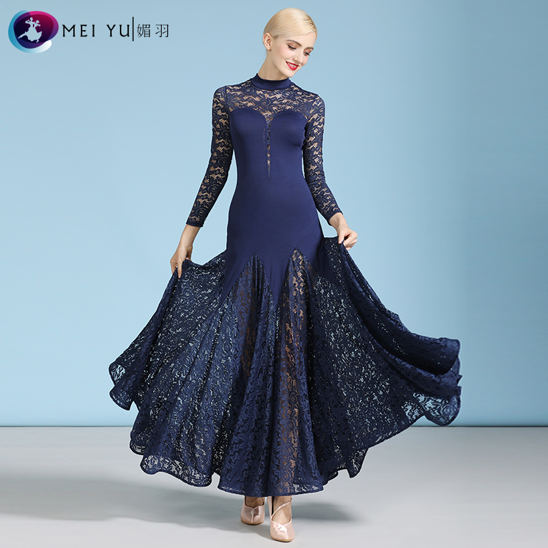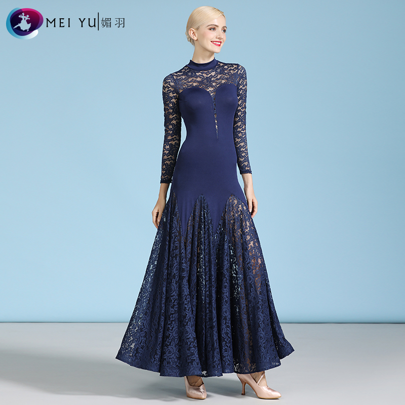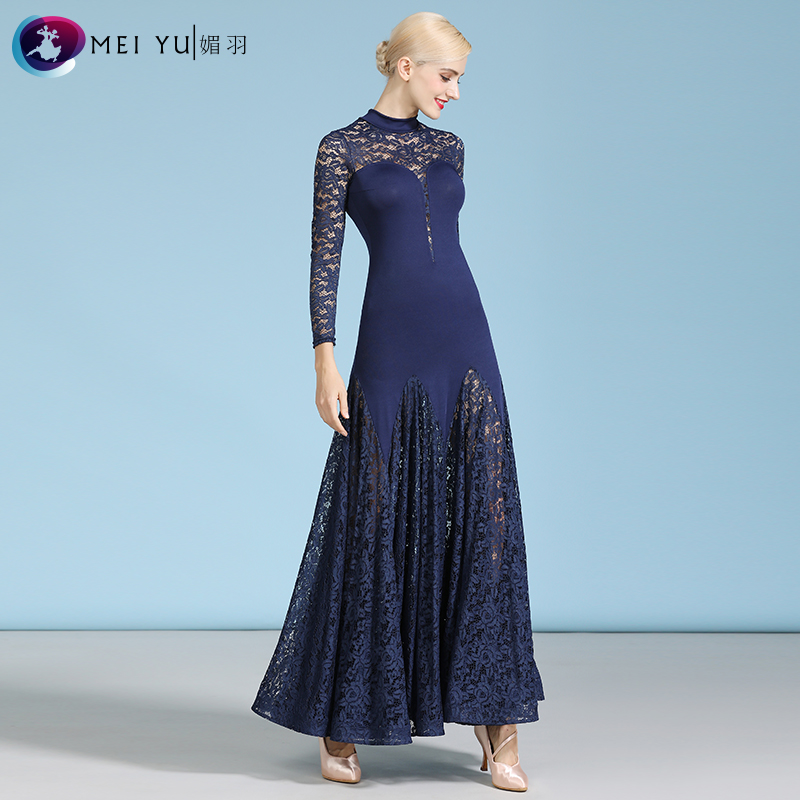 Meiyu adult modern dance dress MY824 lace long-sleeved national standard dance costume dress waltz social dance costume