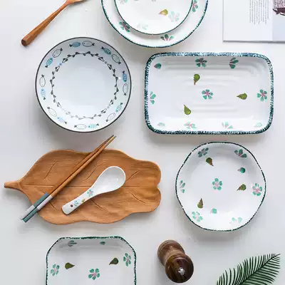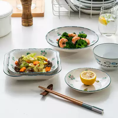 Ceramic plate dinner plate Household creative round plate ins Feng Shui fruit dumpling plate square plate set combination