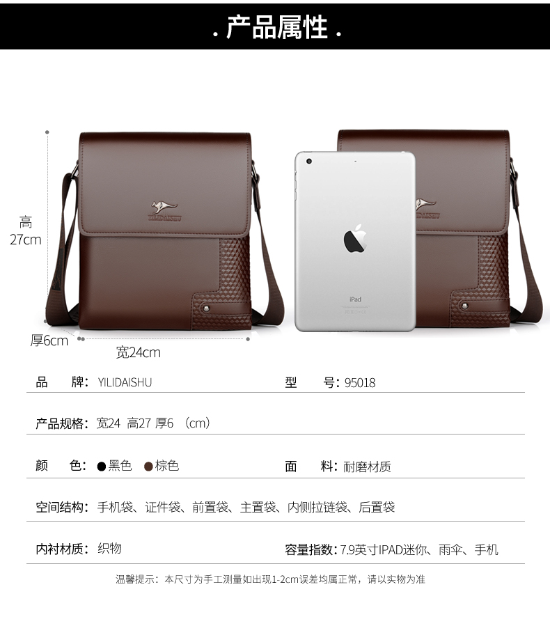 Eriez Kangaroo Leather Men's Bag Shoulder Bag Messenger Bag Casual Fashion Men's Bag Leather Business Bag Briefcase