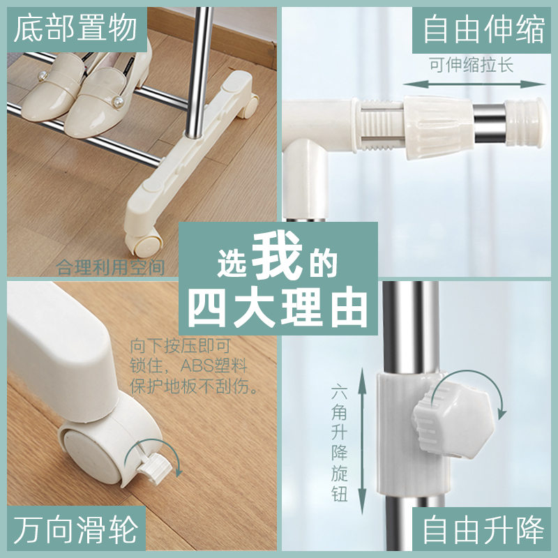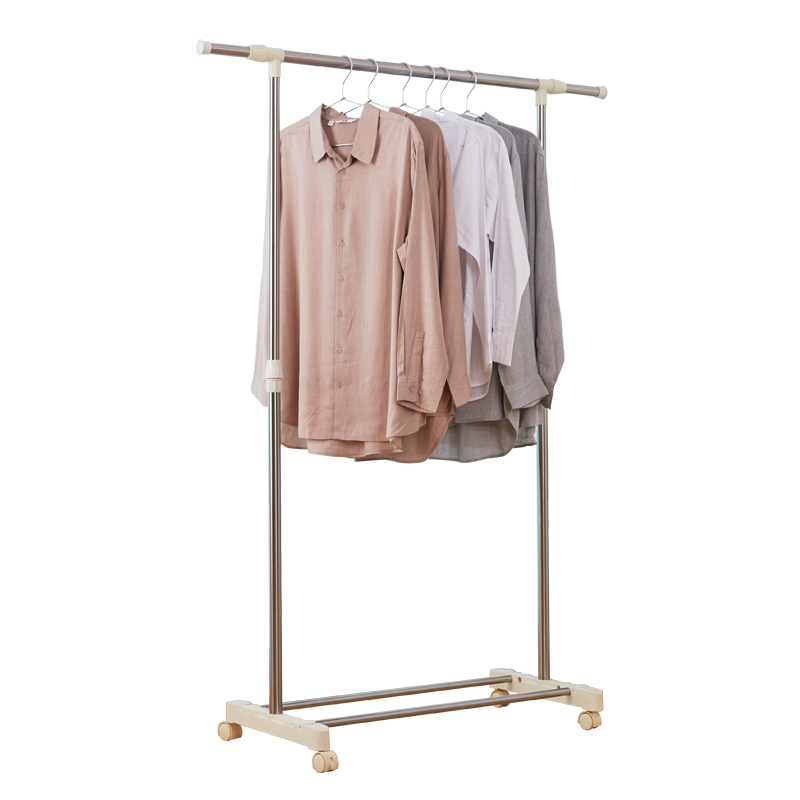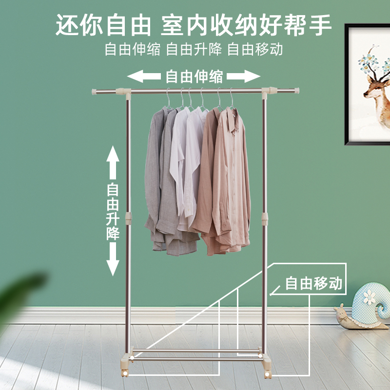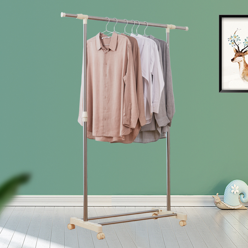 Stainless steel clothes hanger floor telescopic single lever indoor bedroom mobile hanging hanger home simple balcony drying hanger
