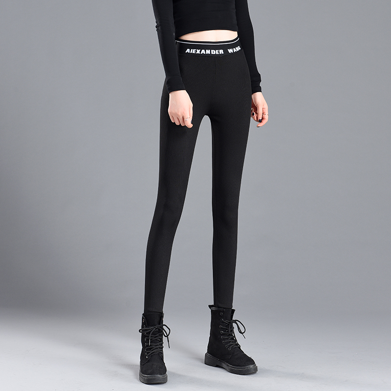 Face-style tight black underpants woman outside wearing thin section 2023 autumn and winter style high waist display slim thickened pencil magic pants-Taobao