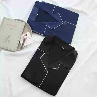 Fit diary simple European and American lapel satin slim loose long sleeve trousers Spring and autumn ladies home clothes nightgown set