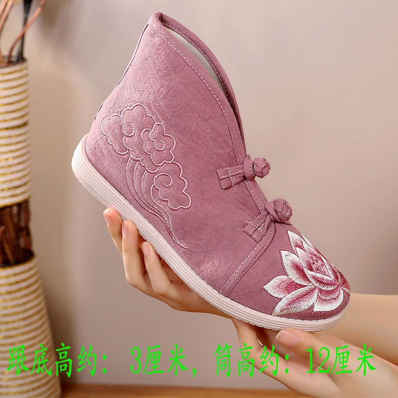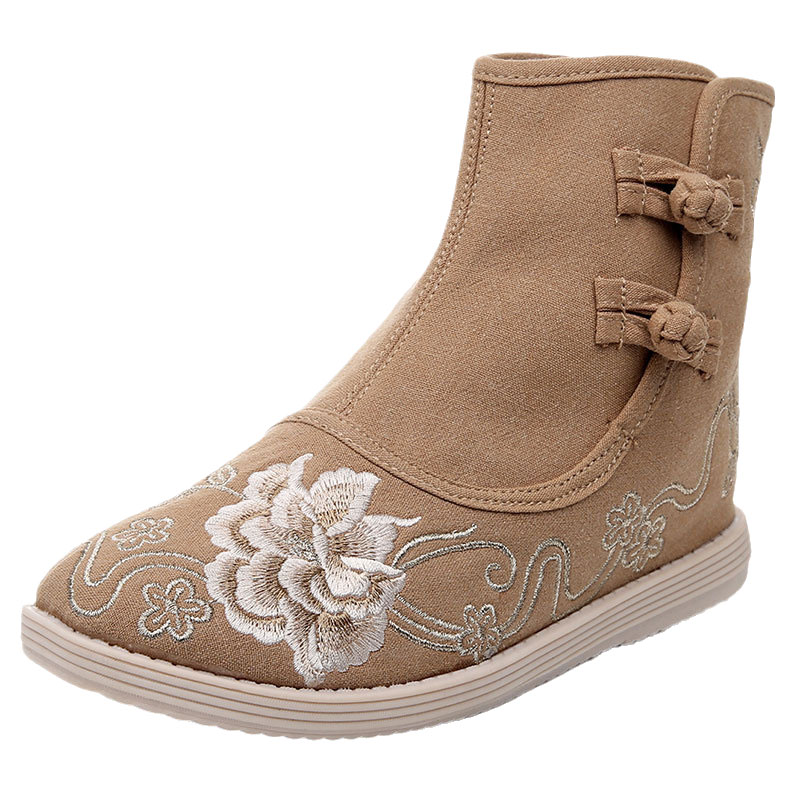 Winter plus velvet tea Zen boots old Beijing cloth shoes women's flat Hanfu cloth boots Chinese ethnic ancient embroidered shoes boots