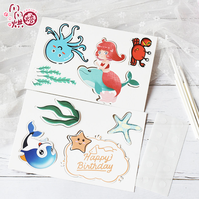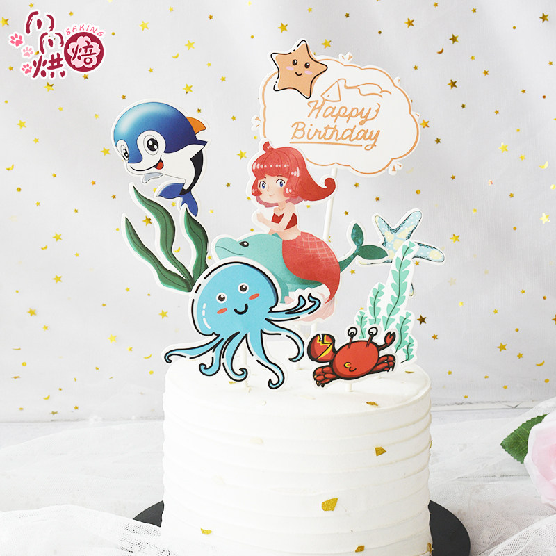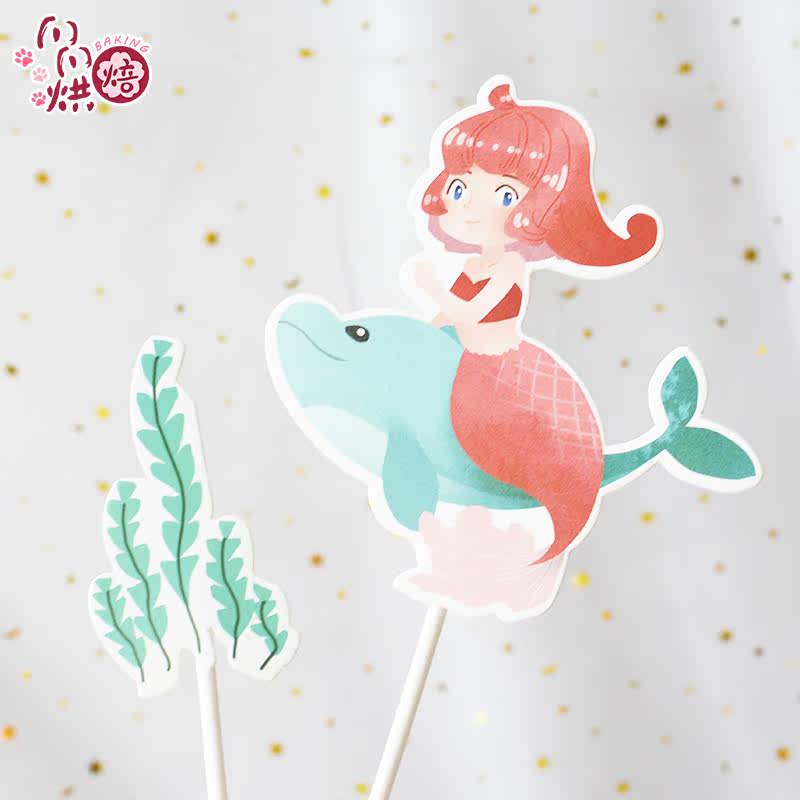 Marine inserts FLAG CARD MERMAID DOLPHIN CAKE INSERT FLAG CARD MARINE ENSEMBLE MATERIAL BAG CAKE INSERT FLAG