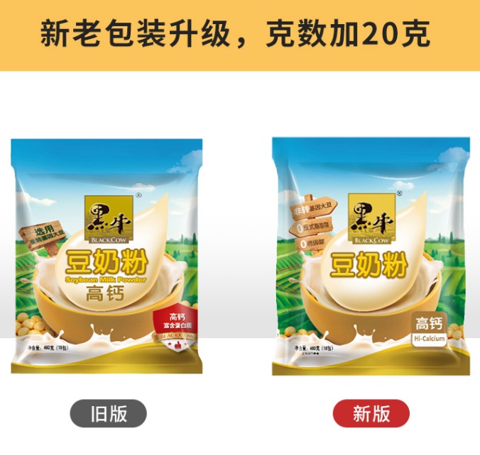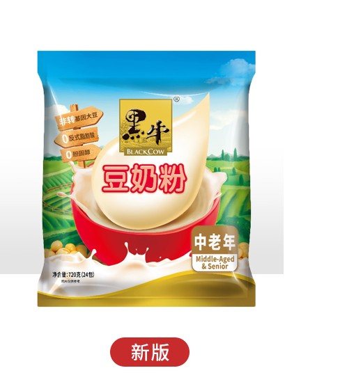 Black cow middle-aged and elderly soy milk powder without sucrose 720g Black cow high-calcium soy milk powder 720g new packaging Black cow middle-aged and elderly soy milk powder without sucrose 700g