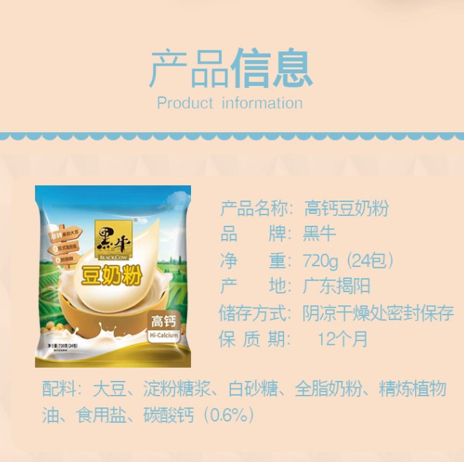 Black cattle high calcium middle-aged and elderly soy milk powder 720g24 small packets of non-genetically modified soybean breakfast brewed beverages shoot 2 bags