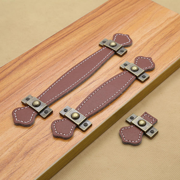 Hole distance 96128m m leather bag handle drawer whole cabinet wardrobe door handle brown black meat color leather small handle