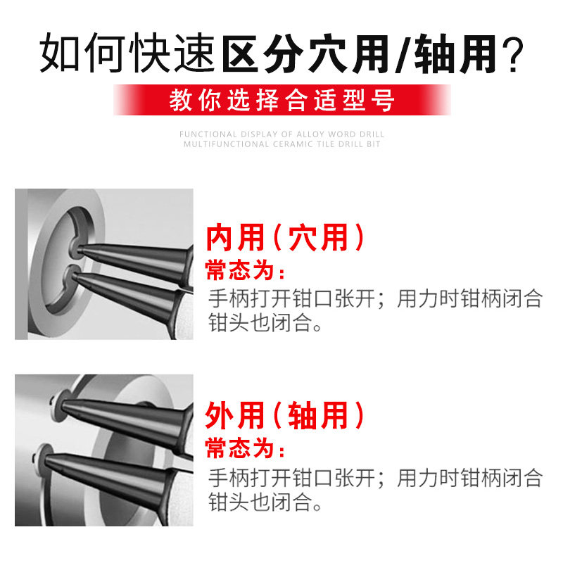 7 inch circlip pliers four-piece set (without storage bag) 7 inch four-piece set (with storage bag to send mini circlip pliers) 9 inch four-piece set (with storage bag to send four-in-one circlip pliers) 13 inch four-piece set (with storage bag to send four-in-one circlip pliers) 13 inch inner bending and outer bend two-piece set (send 4-in-1 circlip pliers) 13 inch inner straight outer straight two-piece set (send 4-in-1 circlip pliers)