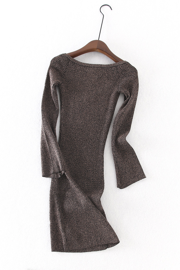 DD58 UK DAN fried chicken sexy faint metal colour big V neckline with hip and hip dress