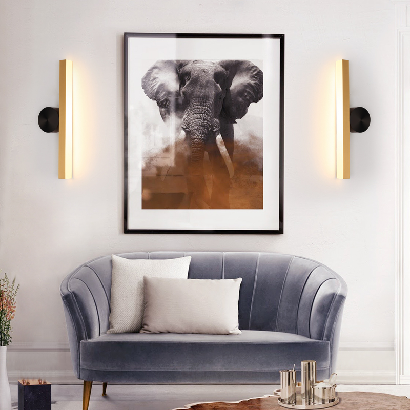 Nordic extremely minimalist long strip wall lamp full copper living room bedroom wall lamp minimalist background wall decorative wall lamp bathroom mirror front light