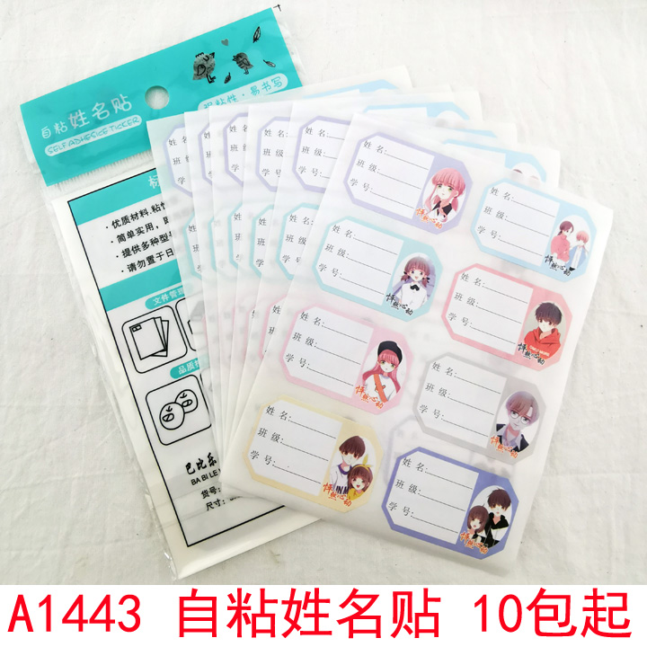 A1443 self-adhesive name sticker 10 sheets of kindergarten stationery water glass paste to sign the Yiwu 2 Yuan store Wenbody-Taobao