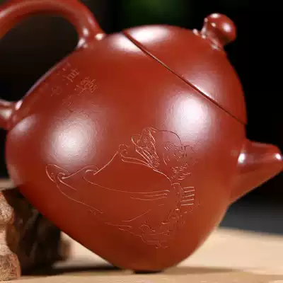 Yixing purple clay pot Wang original mine Dahongpao pot pure handmade famous teapot home kung fu carved tea set
