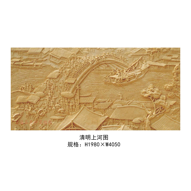 Sandstone glass fiber imitation bronze embossed background wall landscape figure sculpted bas-relief Qingming upper river map
