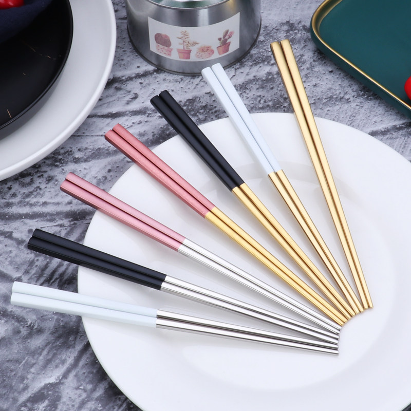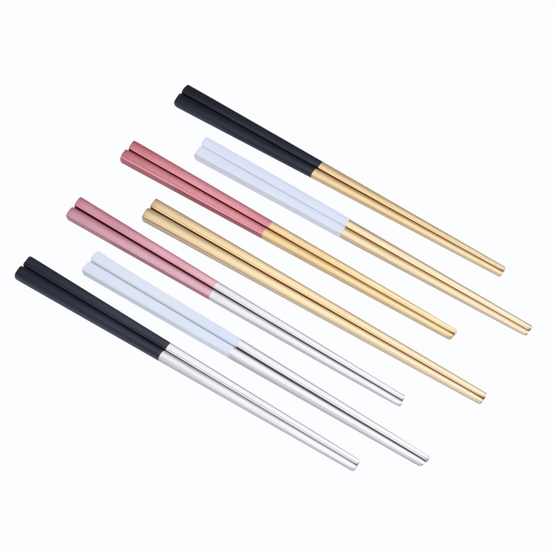 Portuguese tableware thickened 304 stainless steel hollow insulation square anti-scalding chopsticks Household chopsticks custom logo