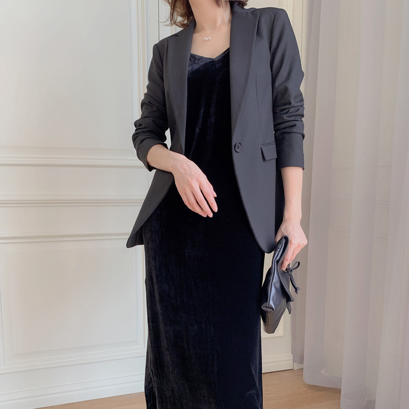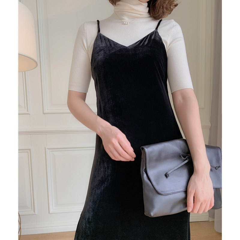 Mars Garmin silk velvet suspender dress V-neck black long skirt sexy suspender skirt 682035