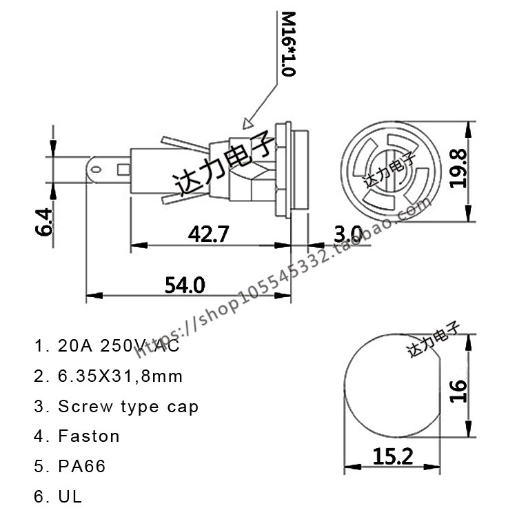 Taiwan SCI R3-55B fuse holder 20A250VAC 6x30mm large current glass insurance tube holder box