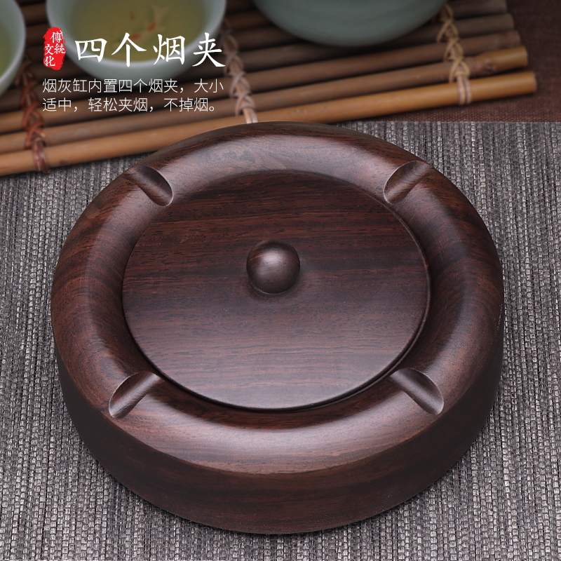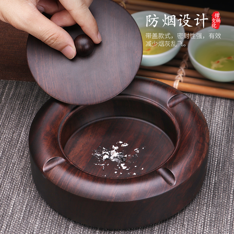 Solid wood ashtray black sandalwood large number with lid home living room Chinese creative personality trend Multi-functional retro swing piece-Taobao