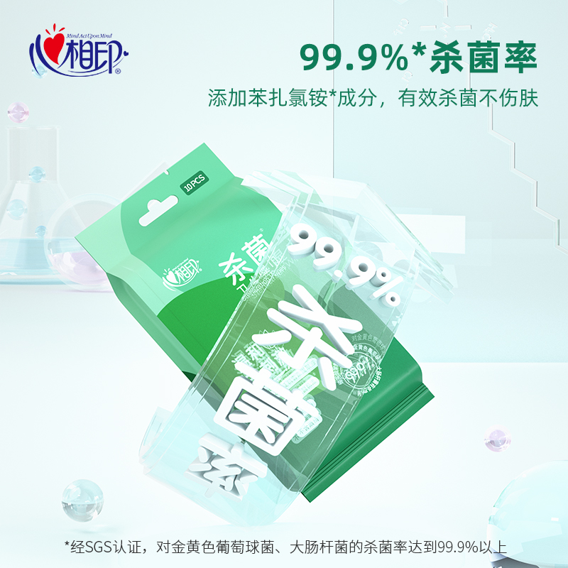 Heart phase Inprint wet towels Alone Packaging Portable Germicidal Monolithic Pack Sanitizing Hygienic Wet Tissues 3 Packs