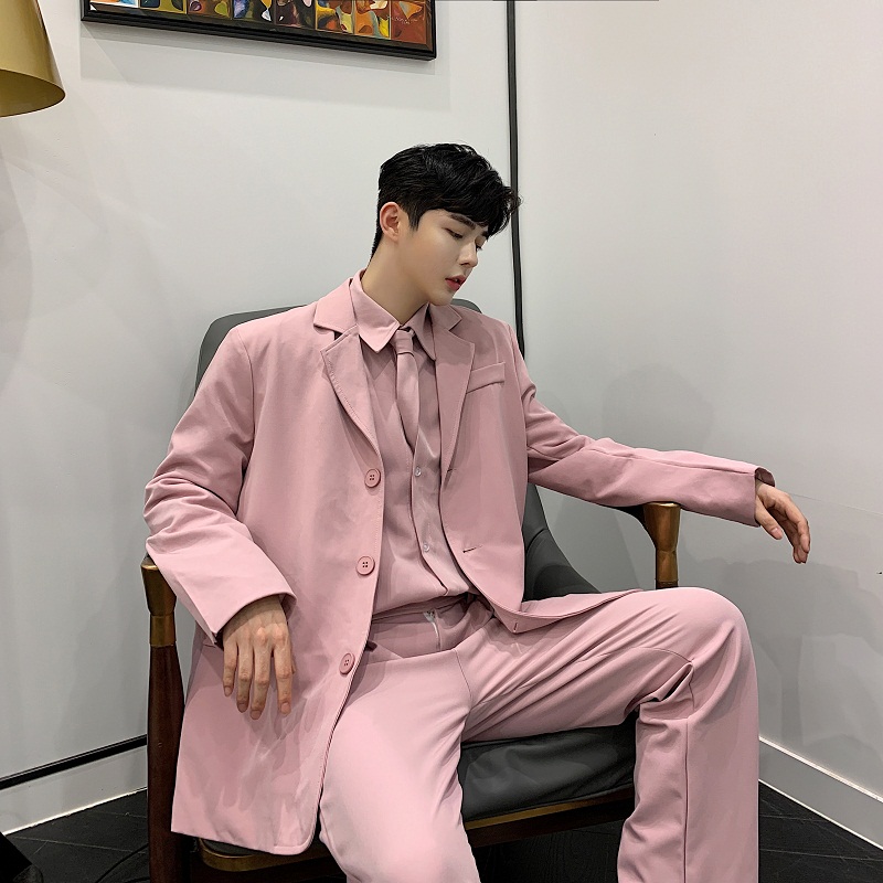 Casual suit men's jacket Korean version loose pink small suit trendy handsome British style ins net red suit men