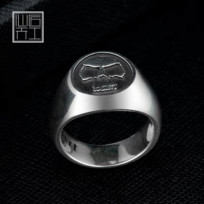 925 pure silver ring male tide personality Skull Skull Ring Female and Ins Chaumen Accessories Hip Hop and Index Finger Ring in Europe and America