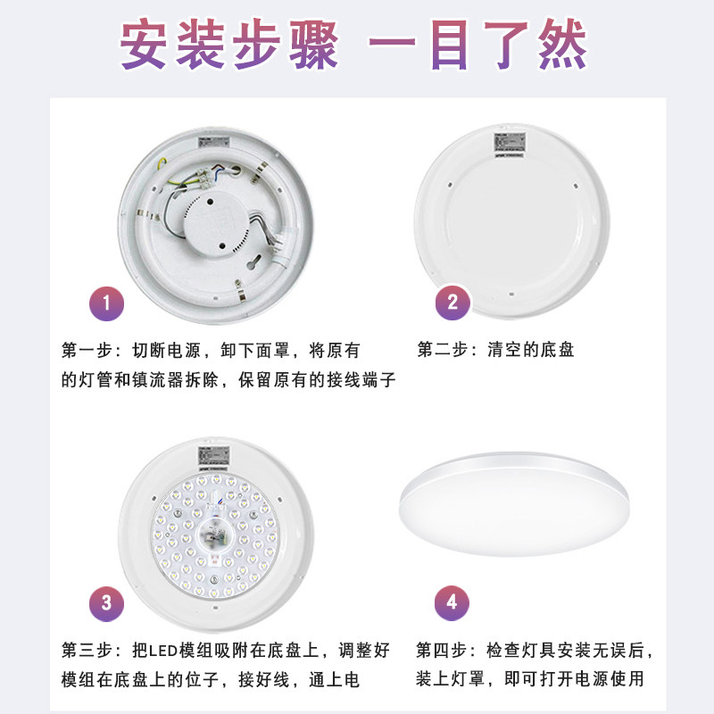 Household LED ceiling wick magnetic suction modification light plate lamp plate round energy-saving indoor light bulb replacement light source