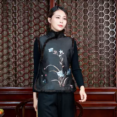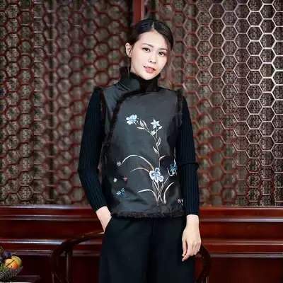 Chinese-style mulberry silk turtle crack fragrant cloud yarn embroidery mink wool cotton vest Silk Sound Cloud sand winter women's cotton coat