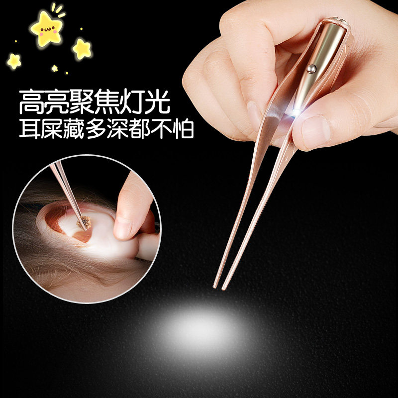 Baby ear spoon children's luminous ear spoon stainless steel earwax clip with light tweezers home safety earwax special