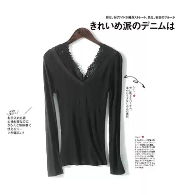 Come to pick up the leak brick cabinet double V-collar lace ladies slim body fit tight bottom autumn and winter long sleeves