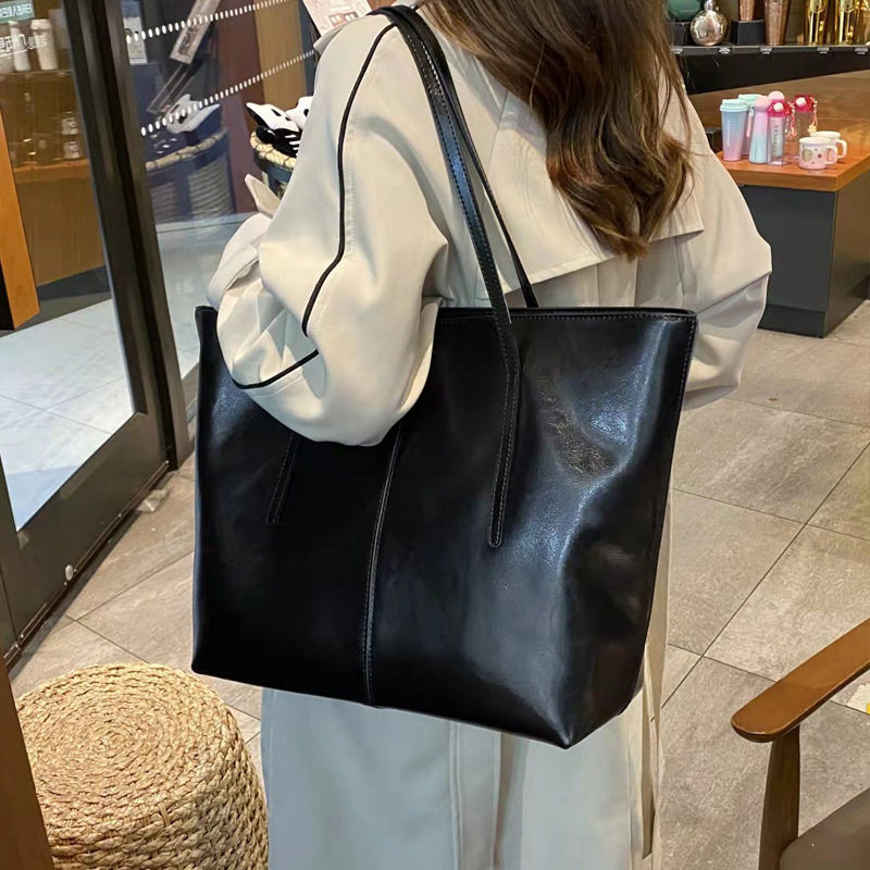 Tidal Bull Leather Big Bag 2023 New Fashion Genuine Leather 100 Hitch Handbag Woman Large Capacity Single Shoulder Bag Woman Tote Bag-Taobao