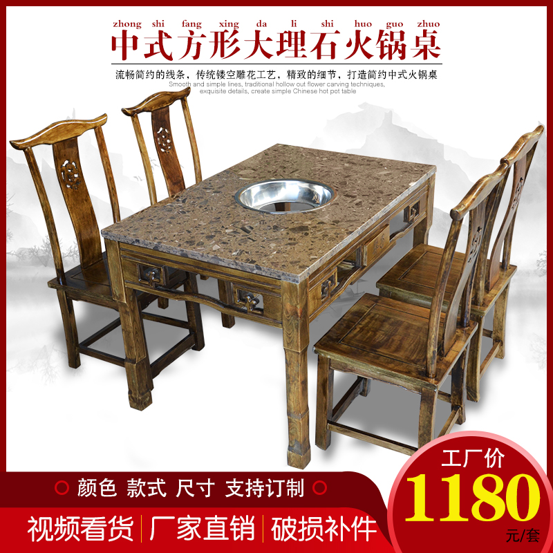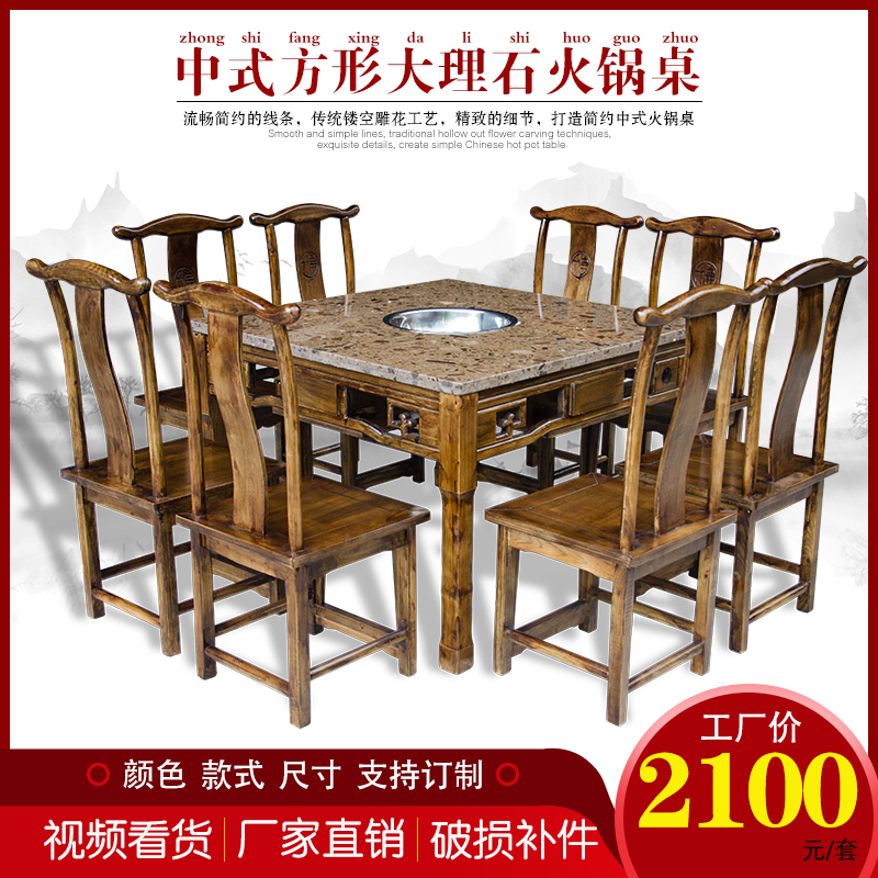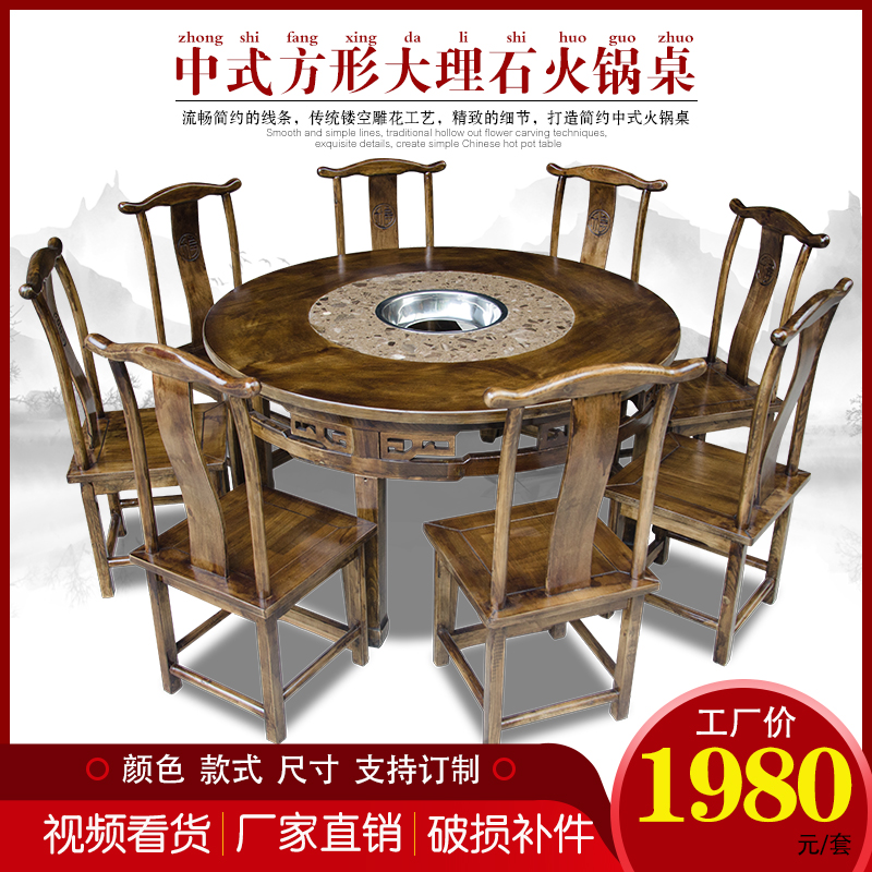 Fire Pan Shop Smoke-free Solid Wood Hotpot Table induction cookers One-in-one-one-pot hotpot dining table and chairs custom-made