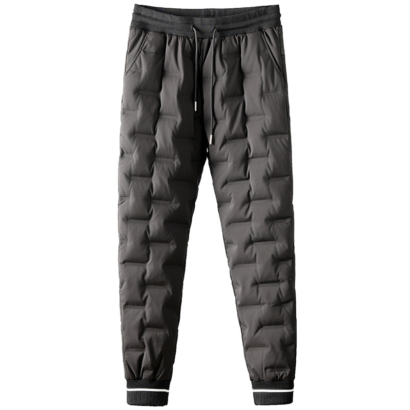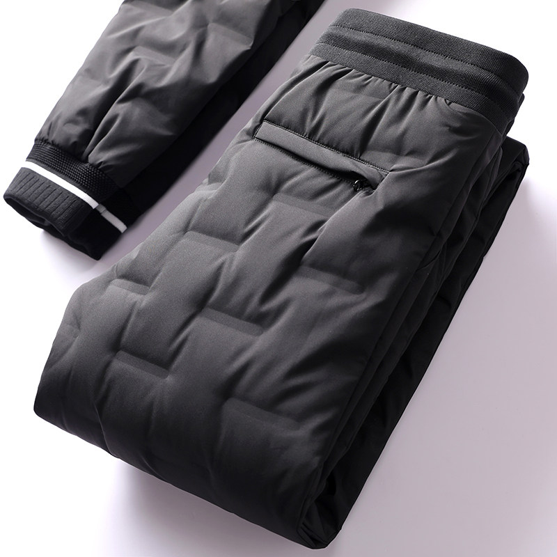 Winter selection warm thickened pressure rubber down pants outdoor waterproof young men slim small feet casual down pants