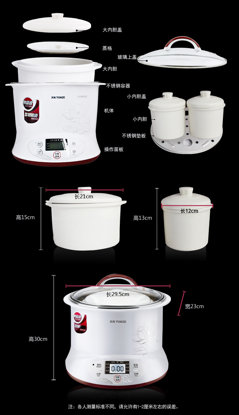 Skyrim automatic stainless steel water-proof stew pot white porcelain ceramic porridge soup bird's nest multi-gall electric stew pot 2 2 liters