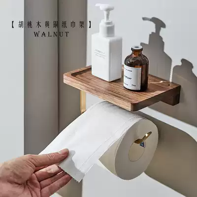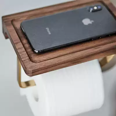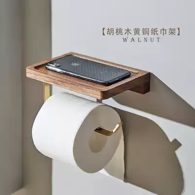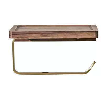 Black walnut solid wood tissue rack non-punching mobile phone wooden rack creative brass gold toilet roll toilet paper holder