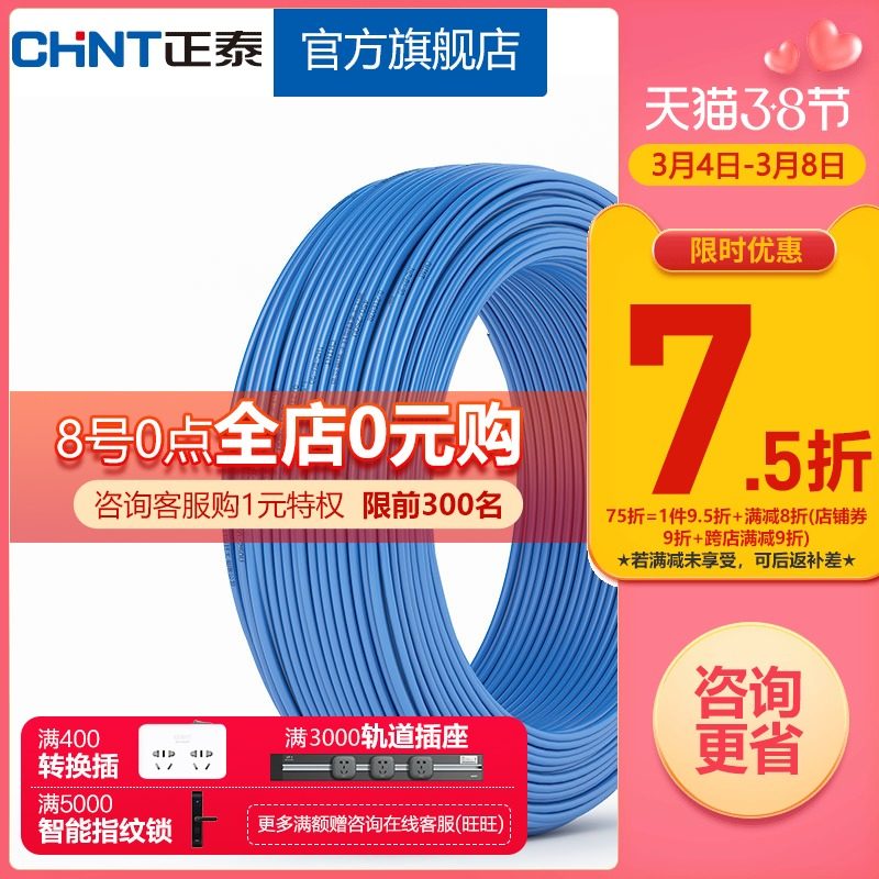 Chint Wire Home Cable Home Improvement Soft Wire Double Layer Flame Retardant BVR1 Square Single Copper Core National Standard Copper Wire