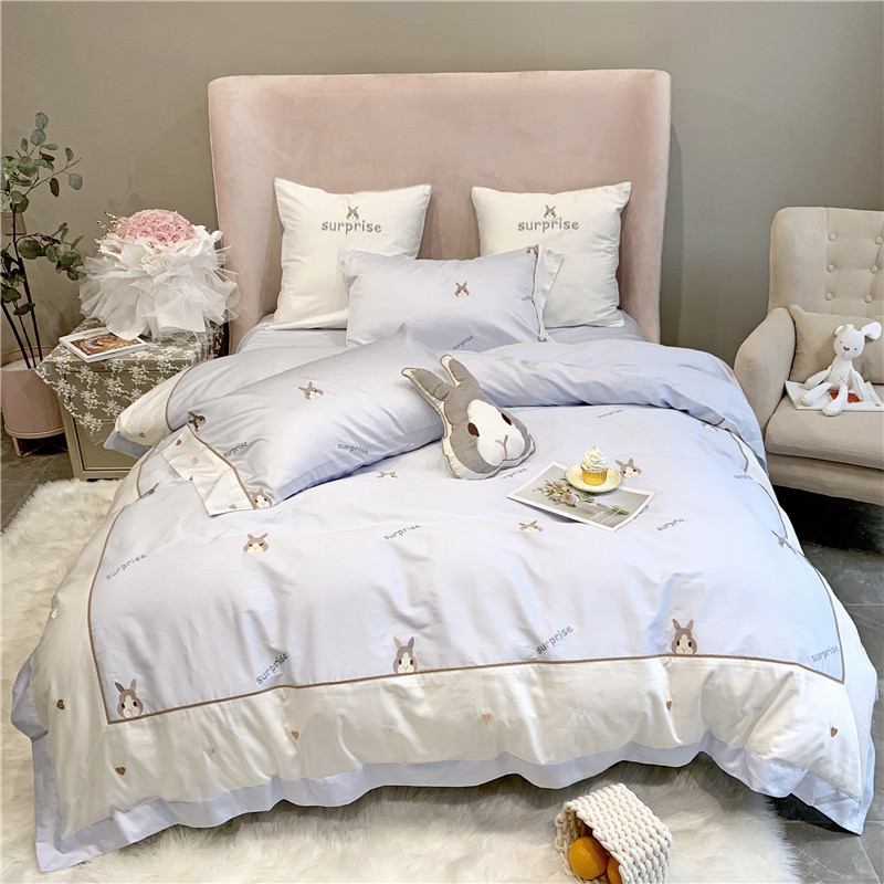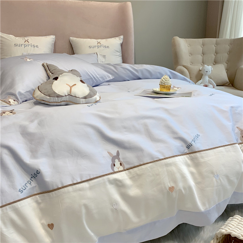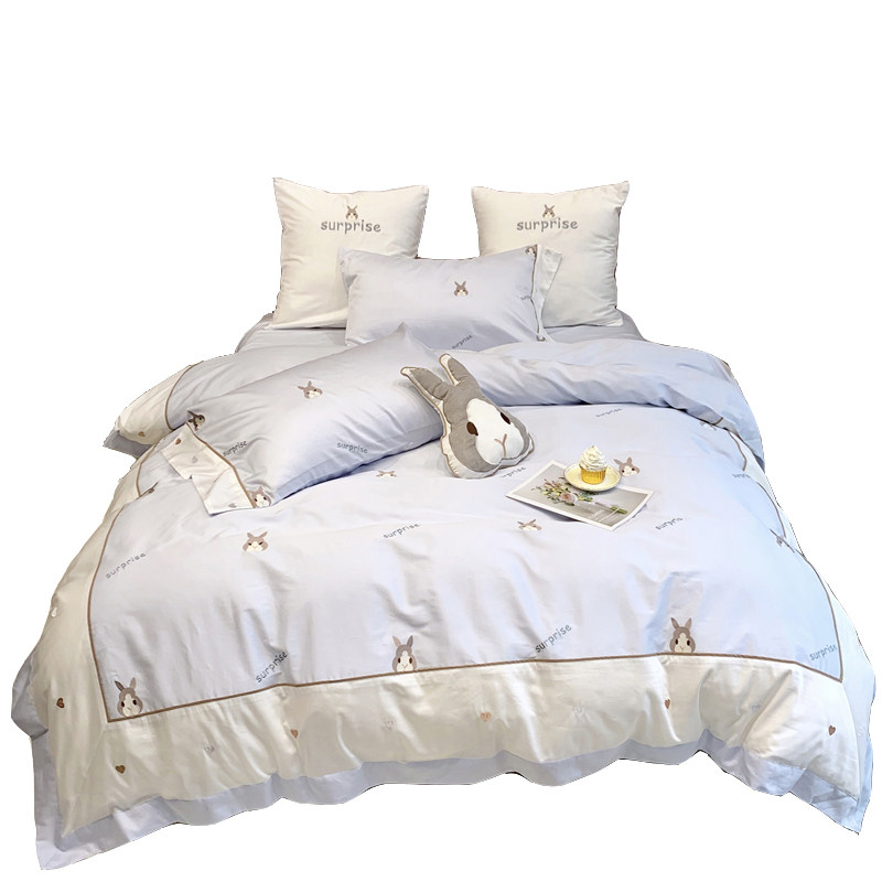 Teenage Girl Hearts Quilt Cover Four Sets Cartoon Cute Little Rabbit Pure Cotton 60 Long Suede Cotton Simple Frescoed Bed Accessories