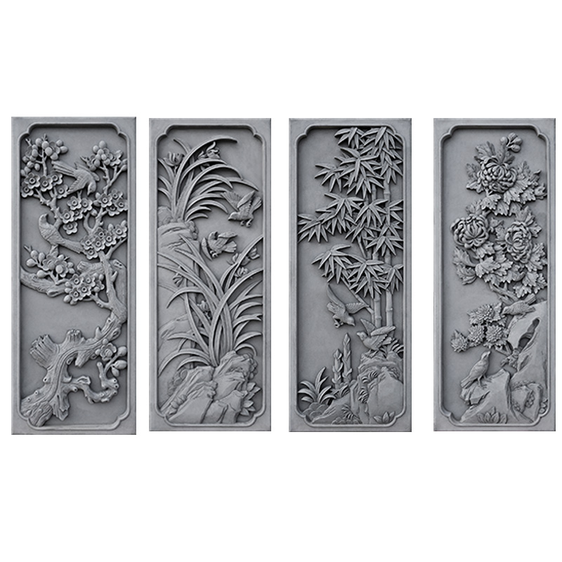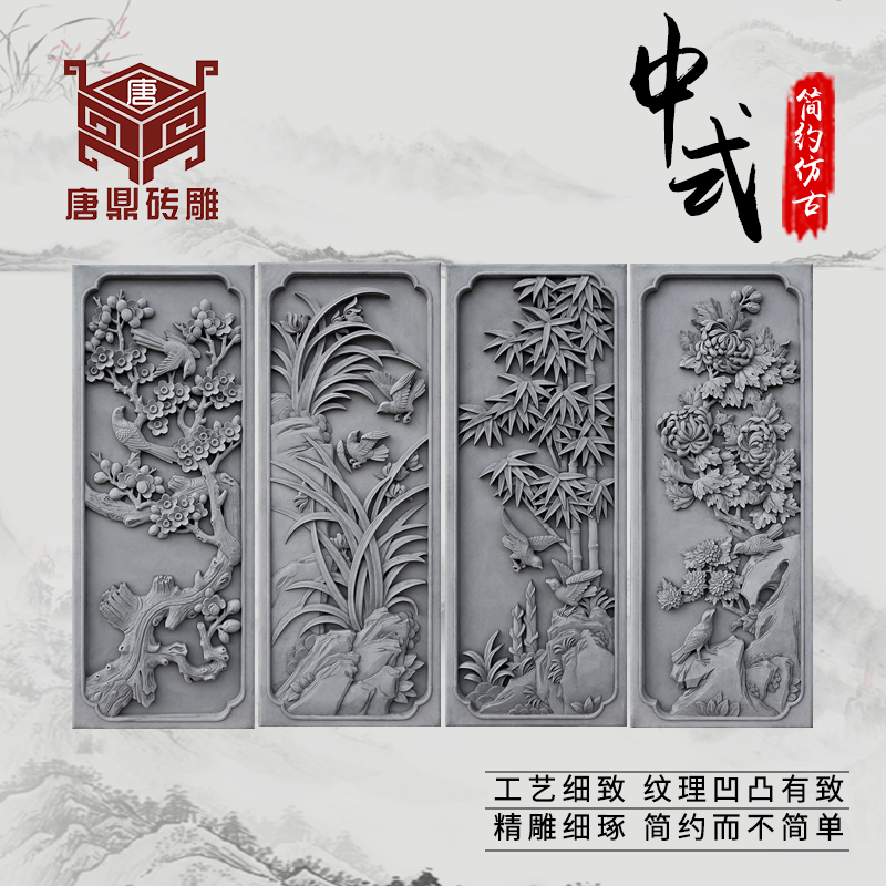 Tang ding brick carving Chinese style picture wall illuminating wall background wall relief living room garden archaized brick blue brick pendant plum orchid bamboo chrysanthemum