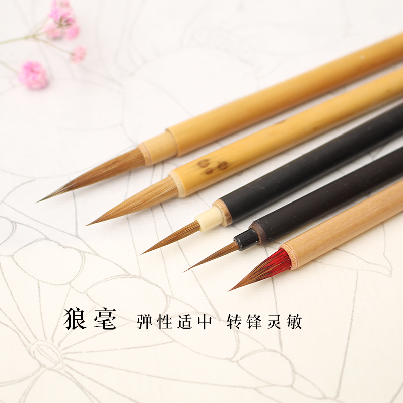 Gongshinzhai Gongbi painting hook line Wolf brush Chinese painting Flowers and birds leaf stem clothing pattern brush stroke line pen stroke special fine brush white brush Watercolor special brush set Nylon Small Kai thin gold body flower branch pretty