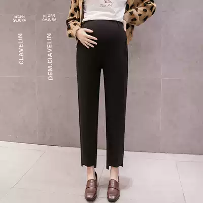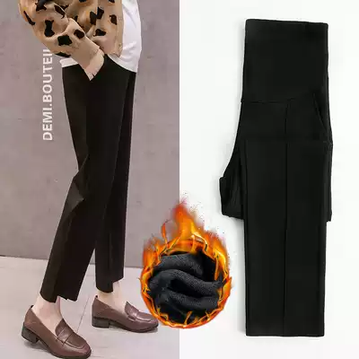 Pregnant women pants autumn wear velvet fashion black straight tube nine-point professional work suit pants pants Spring and Autumn Winter