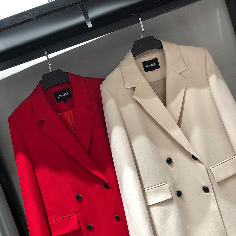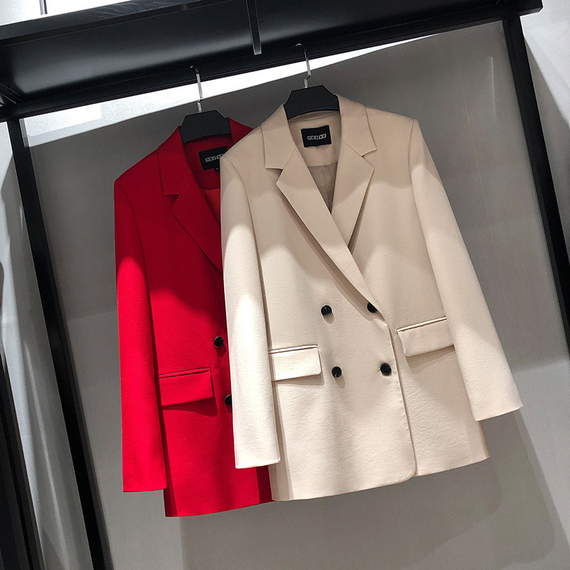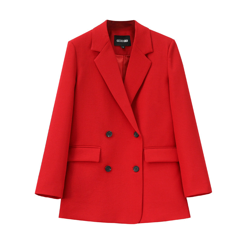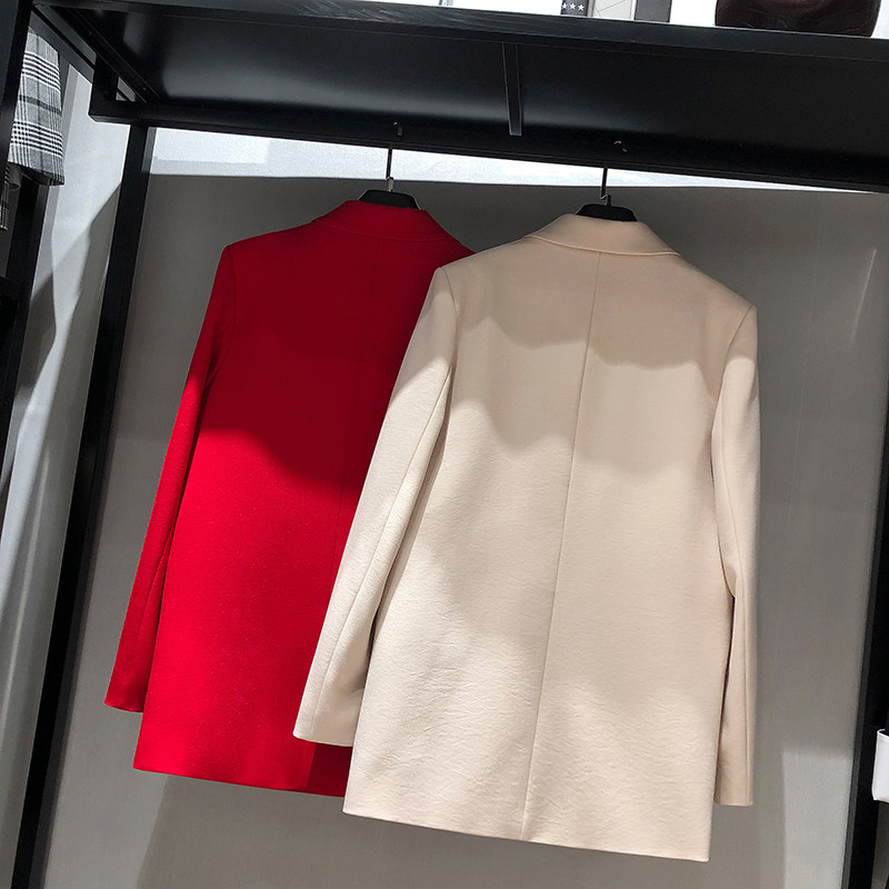MRMW2022 spring new temperament suit collar Skinder slim fit woman pure color double-row buttoned suit jacket