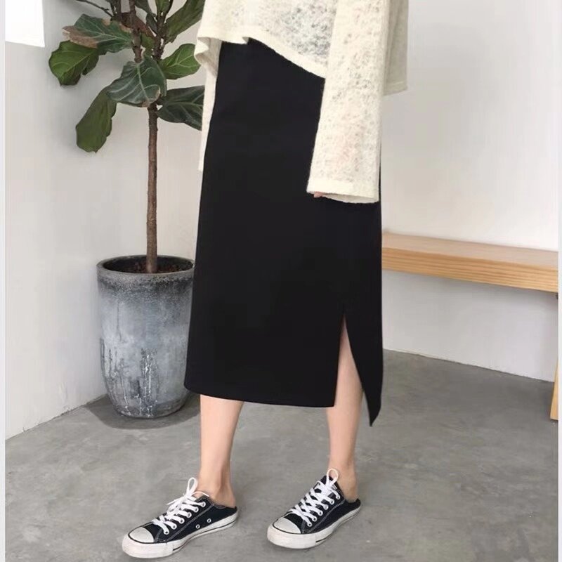 Large size Knit Half Body Dress Woman Spring Autumn New medium Long version Fat mm High waist Xianthin A character open fork One step skirt