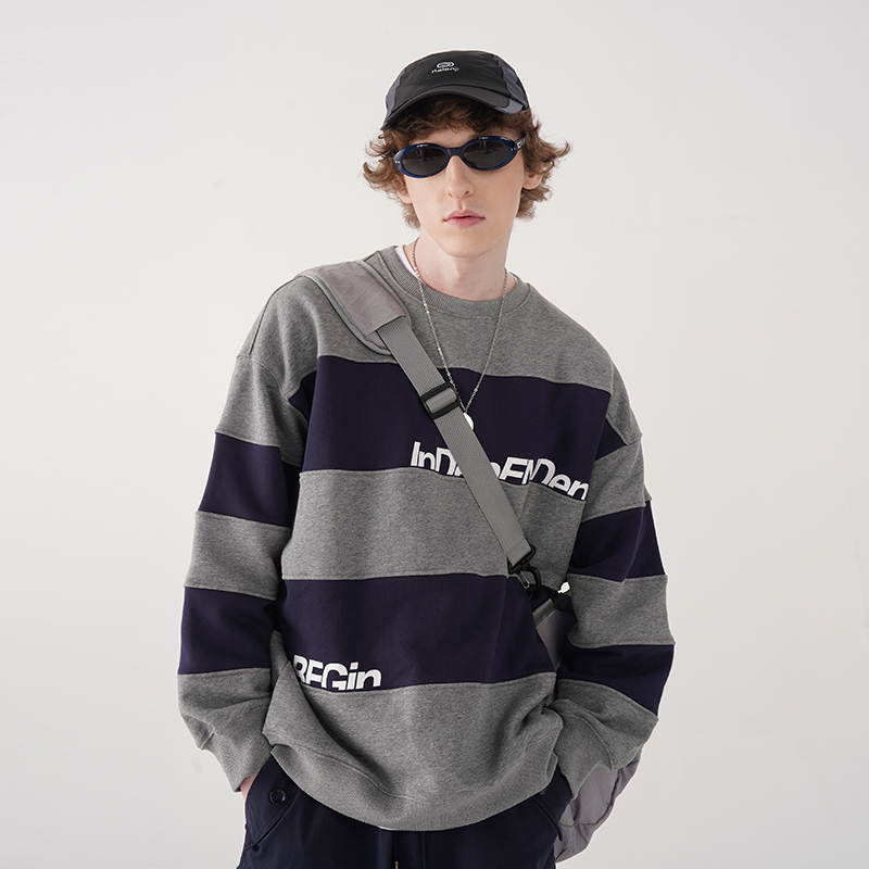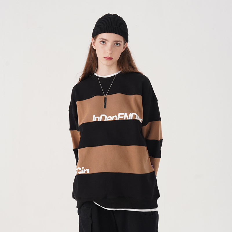 PSO Brand Tide Card Oversize No Cap Necrotic Male Loose Gush Stripe Splicing for Erotic Lovers Blouse