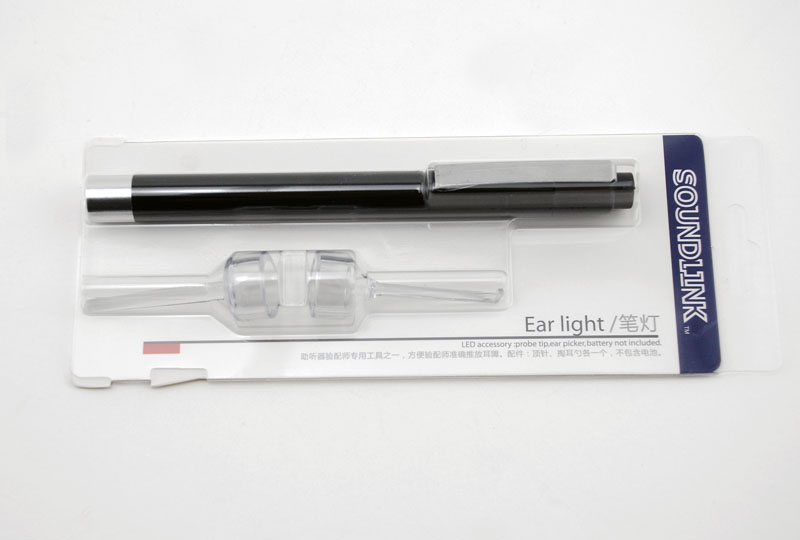 The fitter takes the ear mold to push the ear barrier and uses the pen light to detect the light, and the LED ear scoop hearing aid takes the ear sample