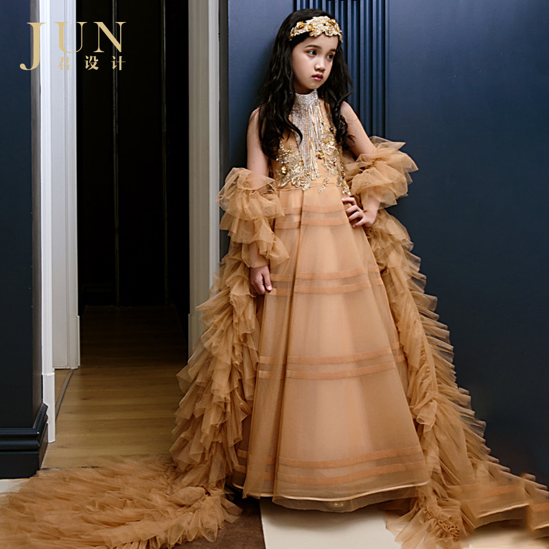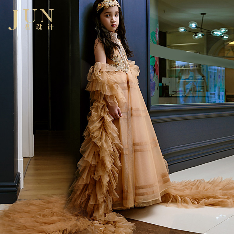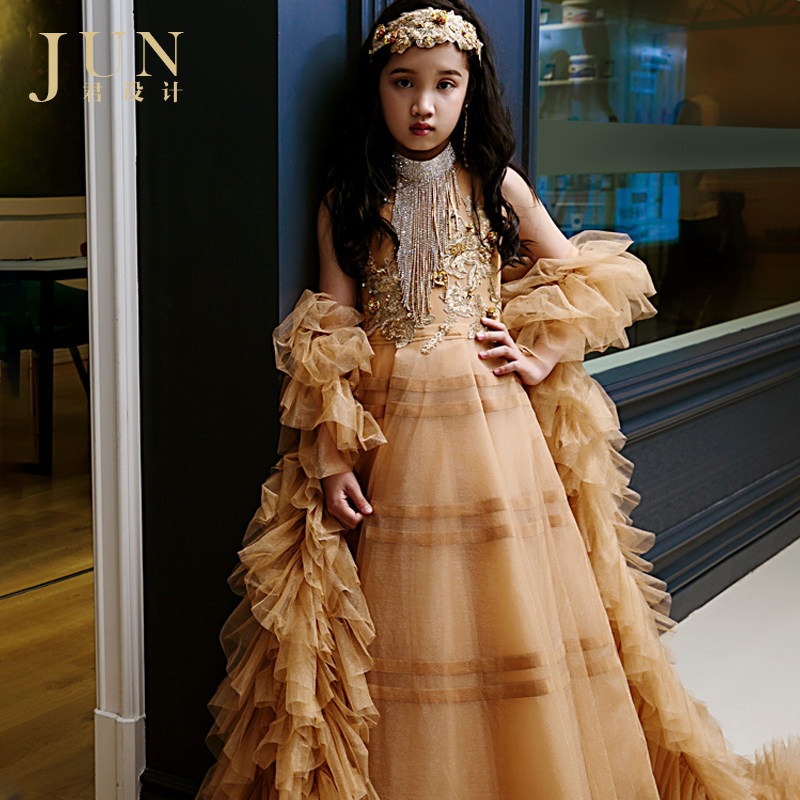 Monarch Design Girl Princess Skirt Flowers Child Fluffy Yarn Model Walking Show Children T Tai High-end Banquet Extravagant Evening Gown-Taobao