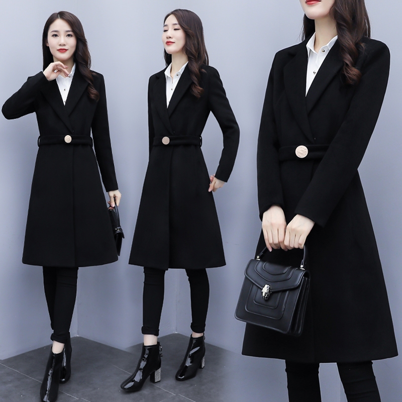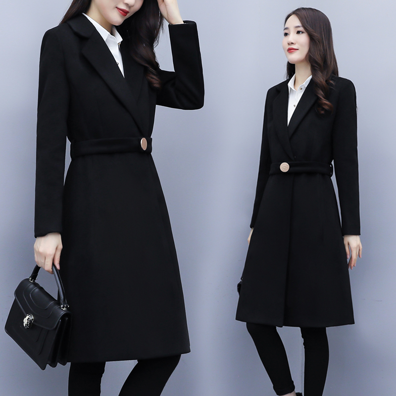 The long - term working suit of the professional clothes in the coat 2022 new thickening of the black hair coat