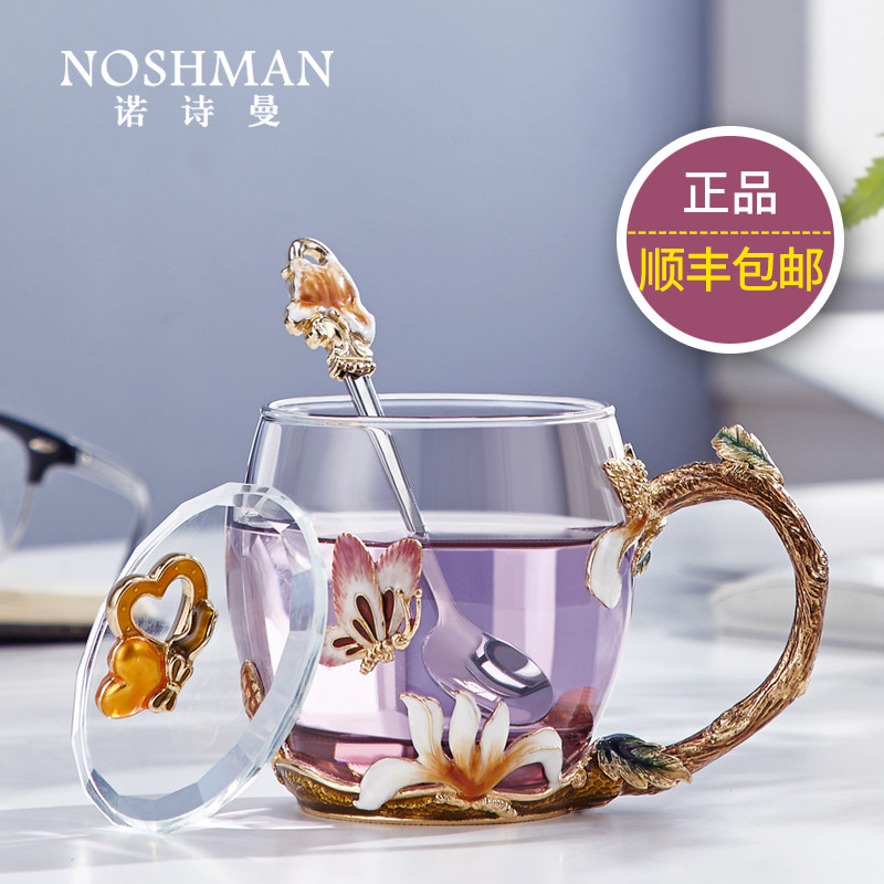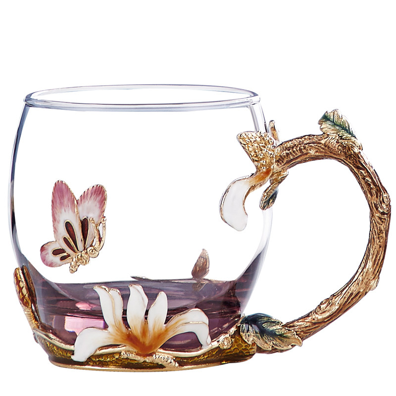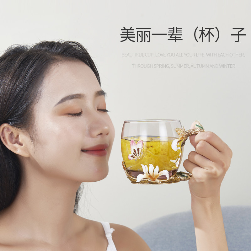 Jade Orchid Enamel Color Flower Tea Cup Shake FAIRY WATER CUP HIGH FACE VALUE CRYSTAL GLASS CUP LIGHT AND LUXURIOUS HOME BUBBLE TEA CUP