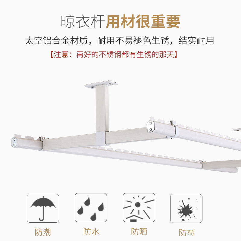 Clothes rod fixed aluminum alloy hanger single pole top mounted household balcony ceiling hanging clothes pole double pole clothes drying Rod