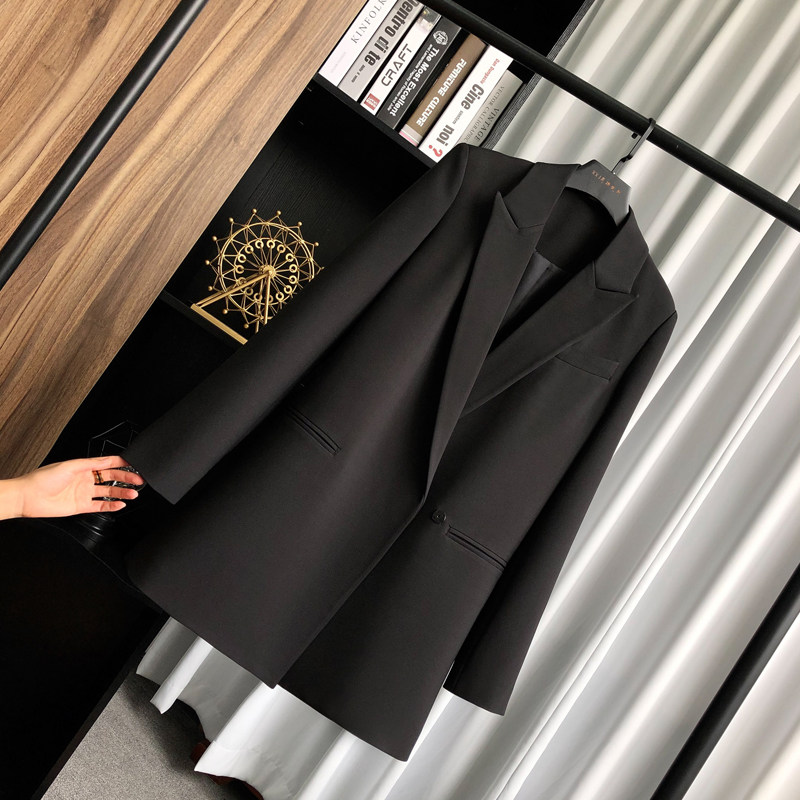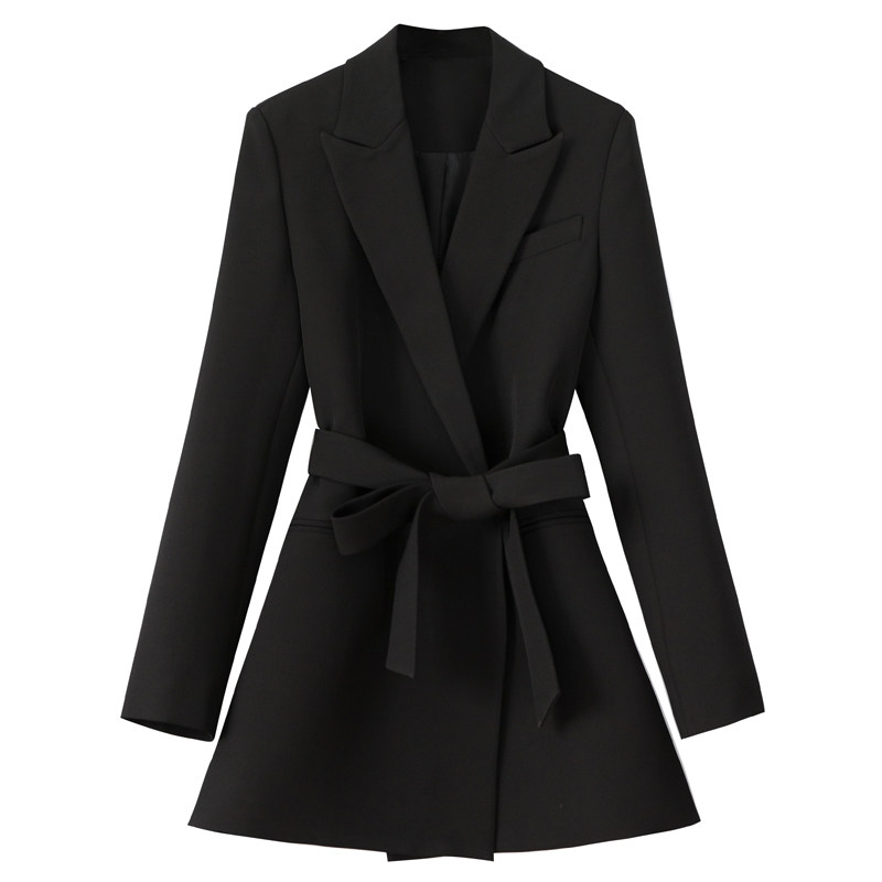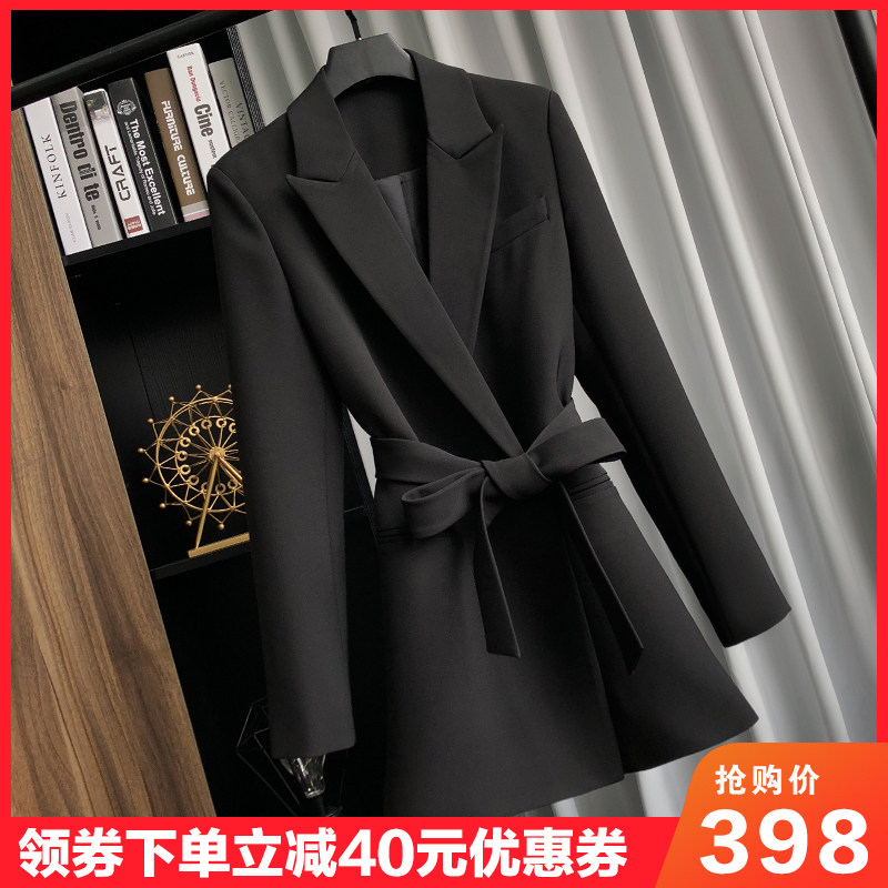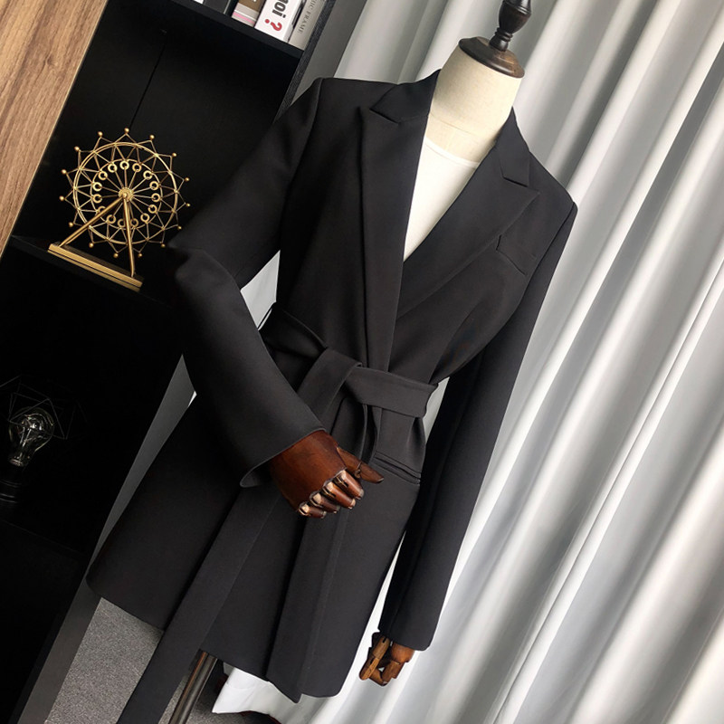 MRMW2020 autumn new pure color belt suit loose temperament in the long OL style suit jacket tide