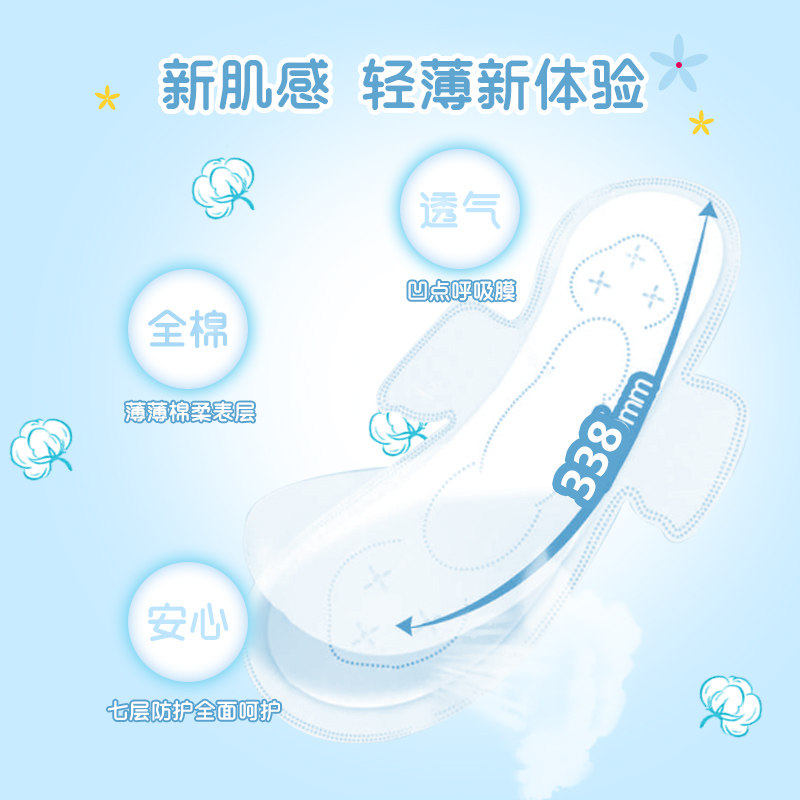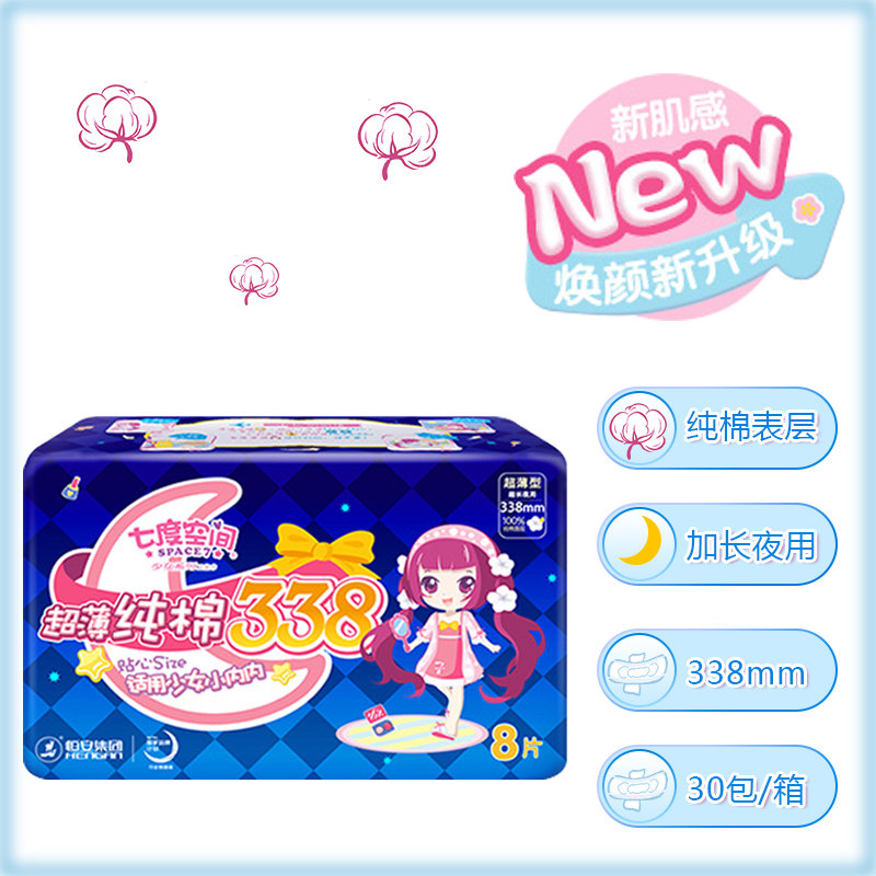 Seven Degrees Space Teenage Girl Series Sanitary Cotton Pure Cotton Ultra Super Long Night Use Aunt Towel 2 Pack 16 Sheet Special Price